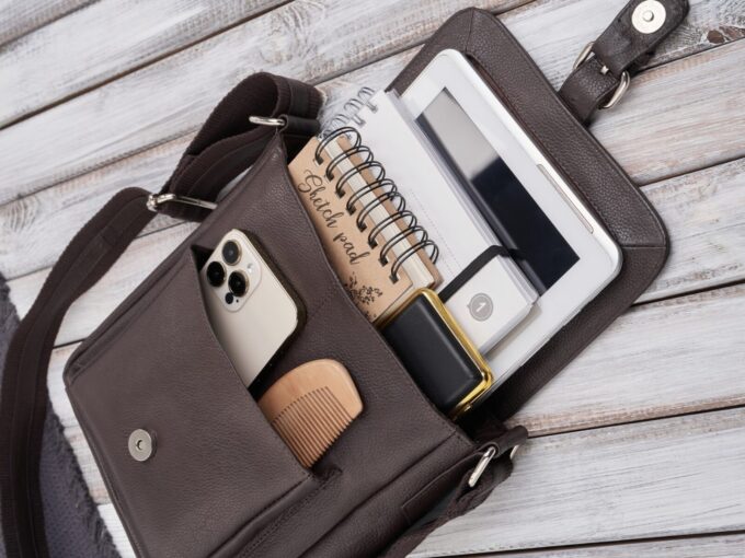 - Średniej wielkości model w klasycznym wzorze z klapką, idealny do codziennego użytkowania.