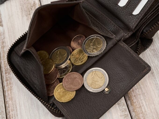 - Kieszonka na monety zapinana na patkę z metalowym zatrzaskiem.