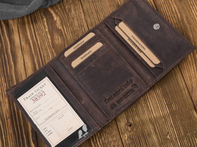 • Ciemnobrązowy średniej wielkości skórzany portfel damski w stylu vintage Paolo Peruzzi