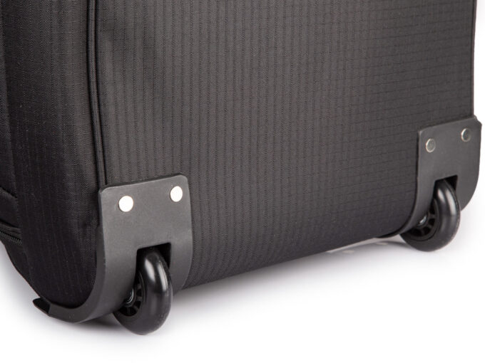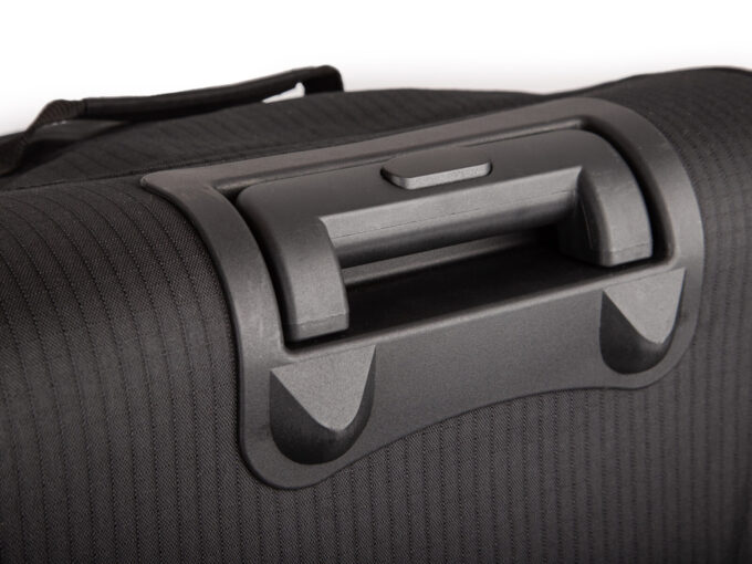 - Z boku znajduje się także dodatkowy uchwyt do przenoszenia torby w pozycji pionowej lub ułatwiający jej wyciąganie z półki bagażowej w samolocie/pociagu.