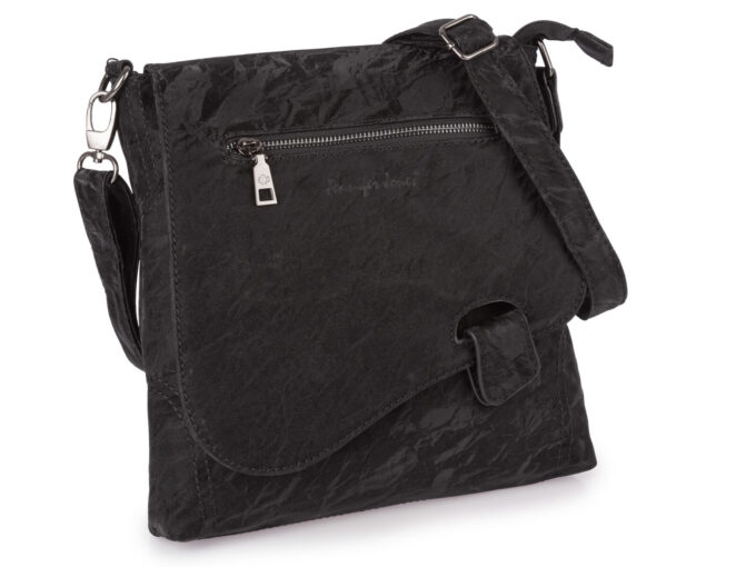 Czarna listonoszka damska z gniecionej aksamitnej skóry ekologicznej Bag Street