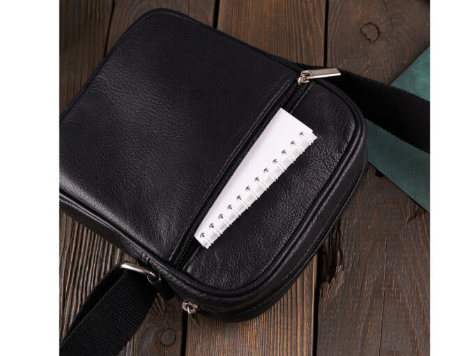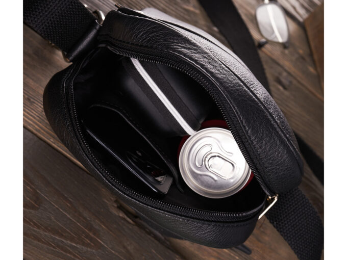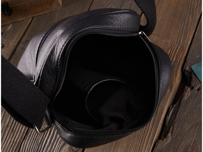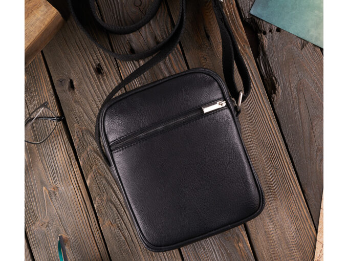 - Czarna, mała, skórzana saszetka męska na ramię.