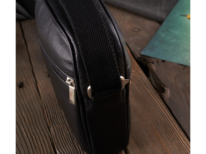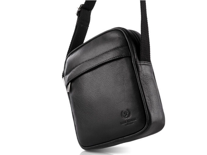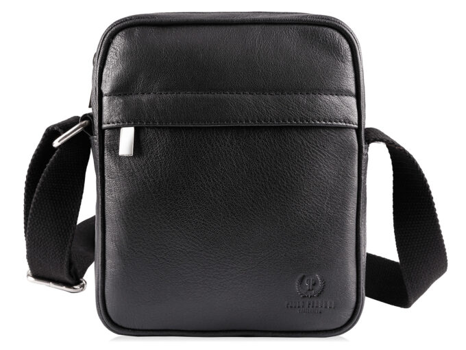 Czarna, mała skórzana saszetka męska na ramię na co dzień Paolo Peruzzi