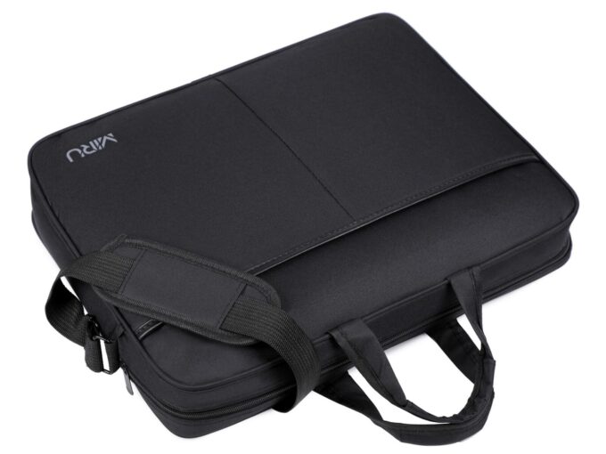 - Czarna, pojemna torba na laptopa o przekątnej do 17.3″ cala polskiej marki MIRU.