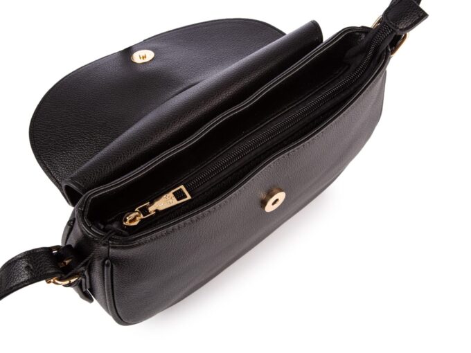 - Wewnątrz torebki znajduje się kieszonka zapinana na dodatkowy zamek błyskawiczny na najcenniejsze przedmioty, oraz druga, otwarta kieszonka boczna na telefon lub inne akcesoria.