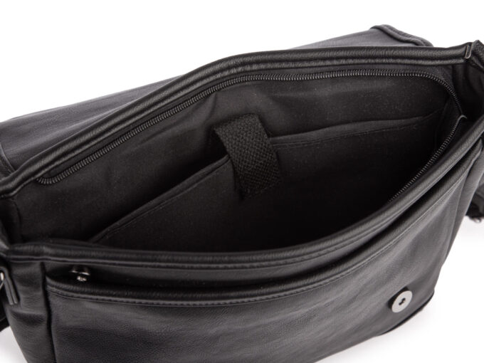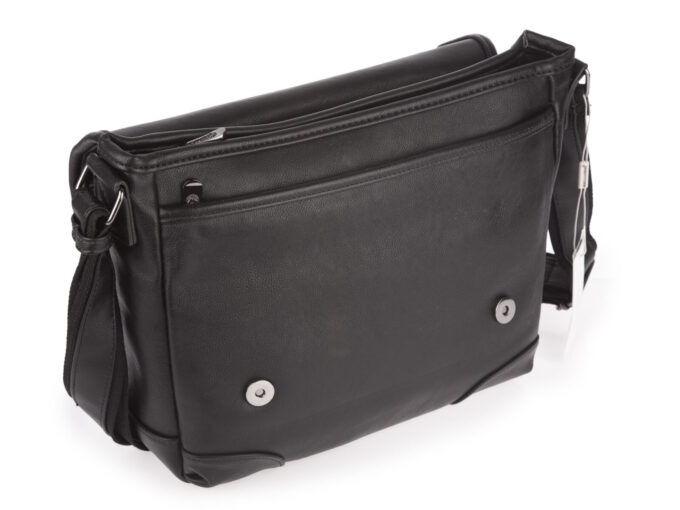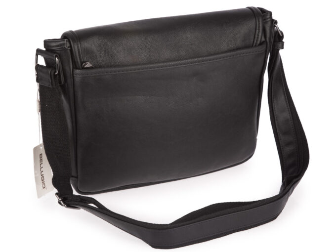 Czarna pozioma torba męska na ramię średnia elegancka z klapą Bellugio