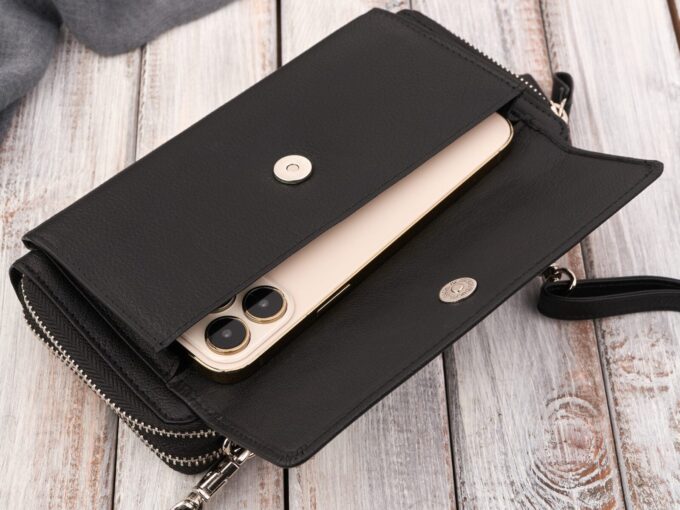 Czarna skórzana mini torebka damska portfel na pieniądze i telefon Paolo Peruzzi