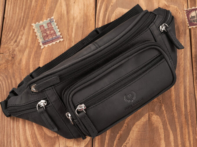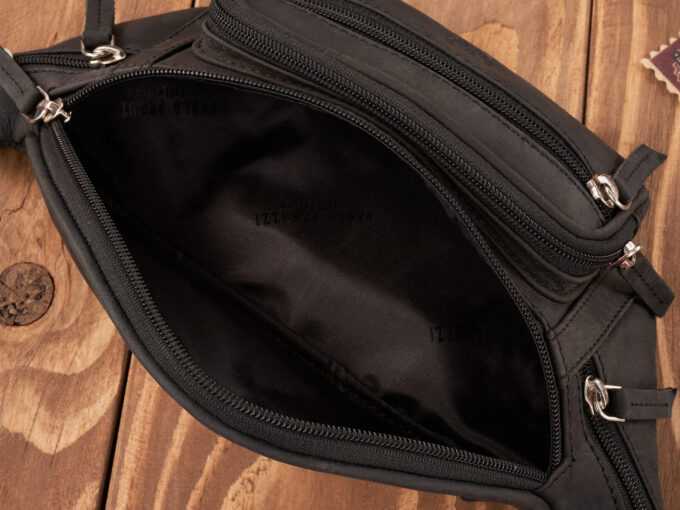 Czarna skórzana saszetka męska biodrowa nerka vintage Paolo Peruzzi