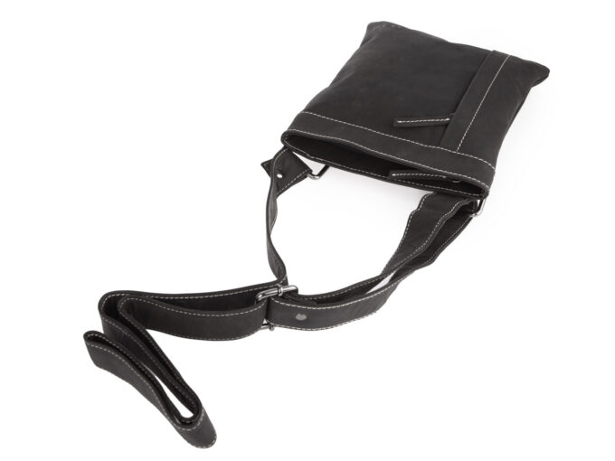 - Torba wyposażona jest w długi i regulowany pasek na ramię wykonany ze skóry.