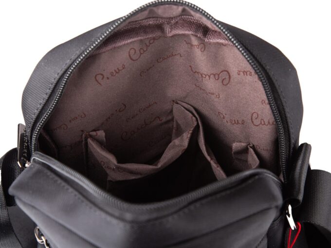 - Czarna torba męska na ramię renomowanej marki Pierre Cardin w wygodnym, średnim rozmiarze, idealna na co dzień.