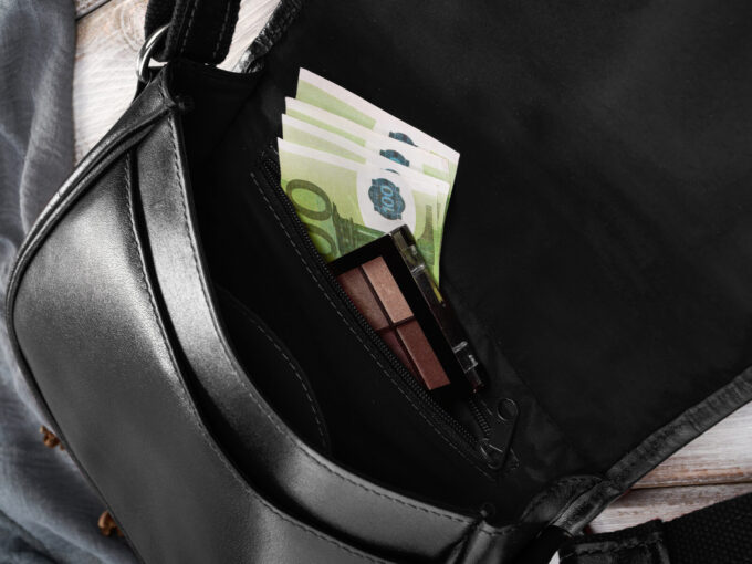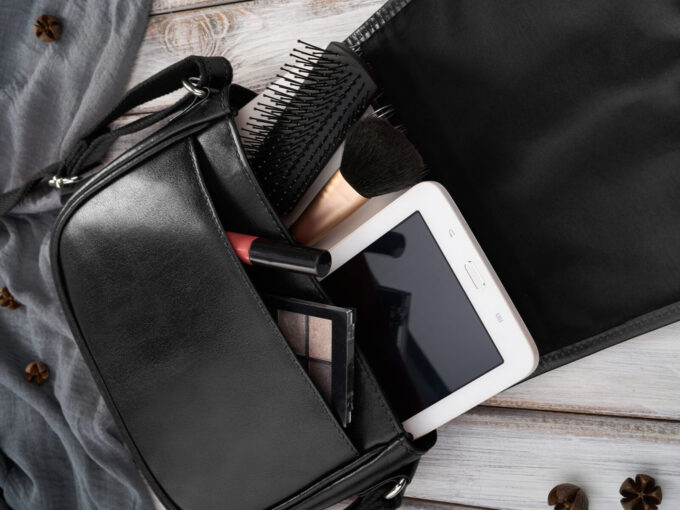 - Z przodu torebki, pod klapką umieszczono kieszonkę do wsunięcia podręcznych drobiazgów.