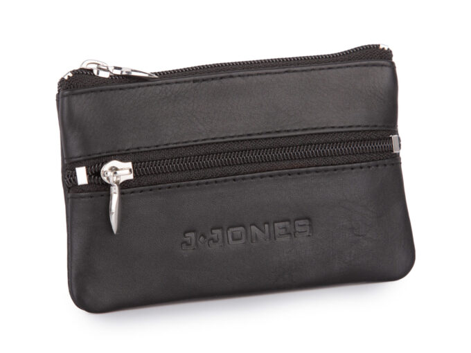 Czarne etui skórzane na klucze zapinane na zamek J Jones