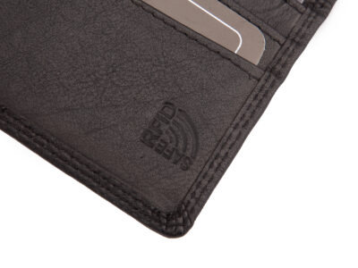 • Czarne, skórzane etui na karty płatnicze z ochroną RFID zapinane na zatrzask