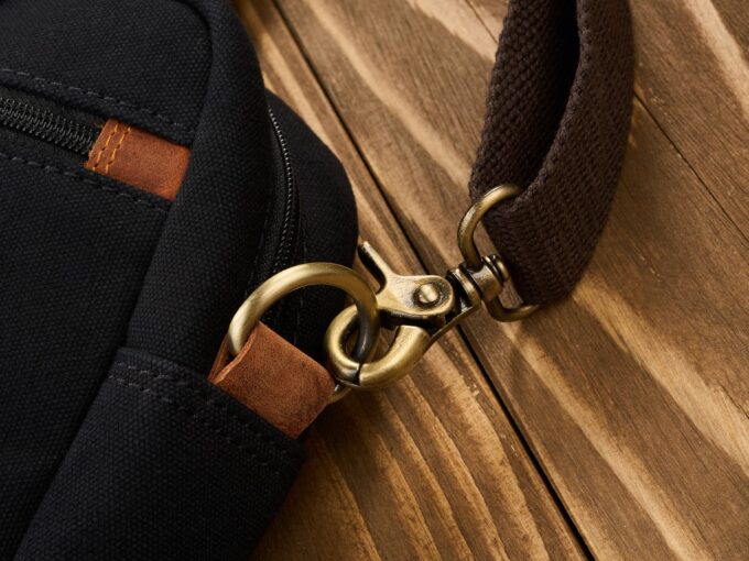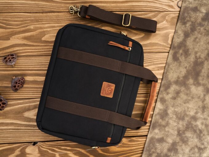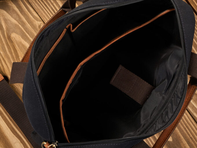 - Uszyta z wysokiej jakości, eleganckich materiałów, mocnego bawełnianego canvasu z elementami ze skóry naturalnej.