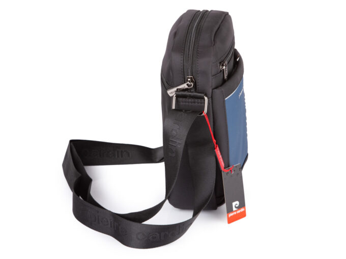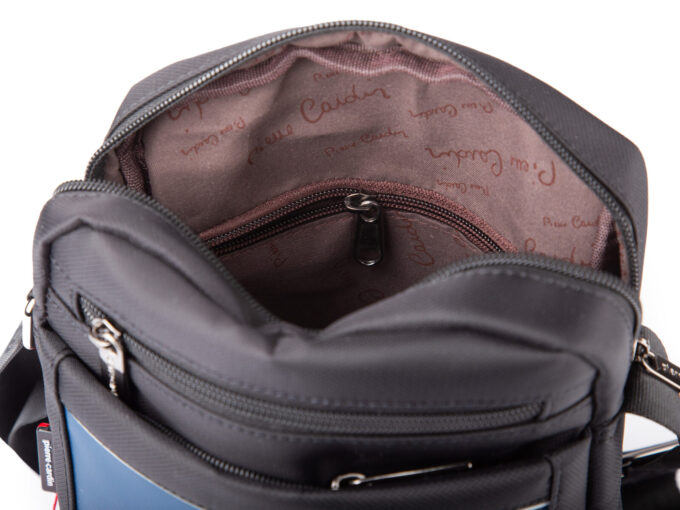 - Czarno-niebieska torba męska na ramię renomowanej marki Pierre Cardin w wygodnym, średnim rozmiarze, idealna na co dzień.