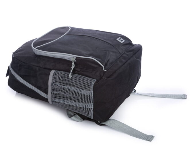 - Średniej wielkości plecak w kolorze czarno-szarym.