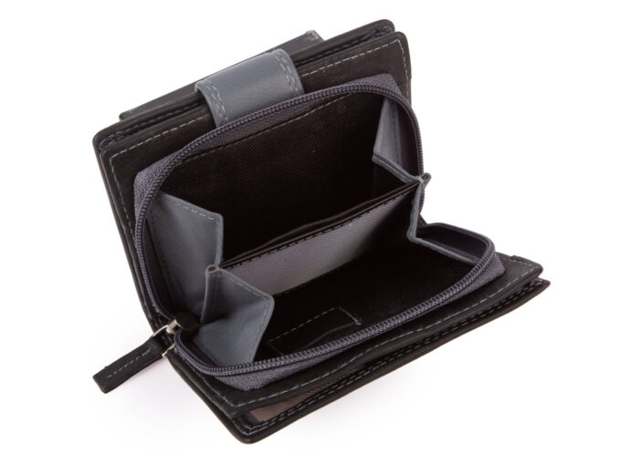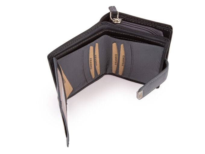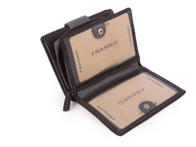Czarno-szary skórzany portfel damski Franko z ochroną kart RFID