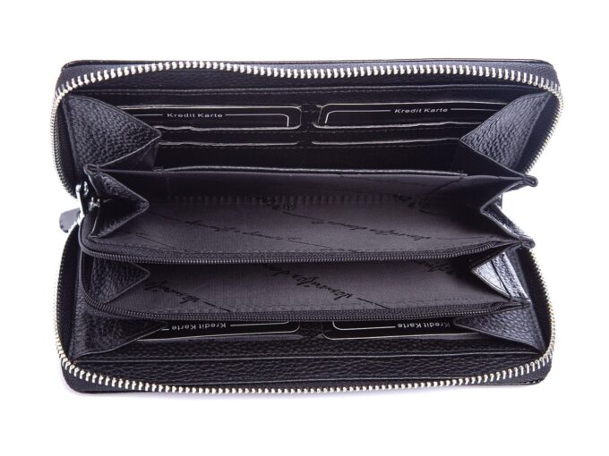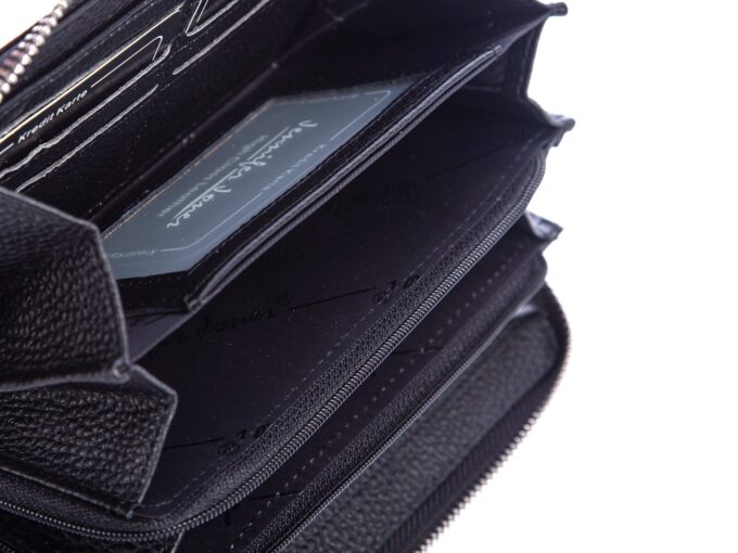 - Posiada kieszeń na bilon zamykaną na dodatkowy zamek, wewnątrz portfela,
