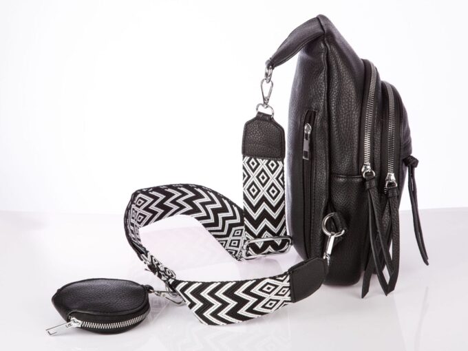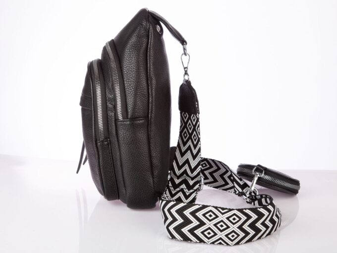 - Miejski plecak damski na jedno ramię z szerokim paskiem i saszetką w komplecie.