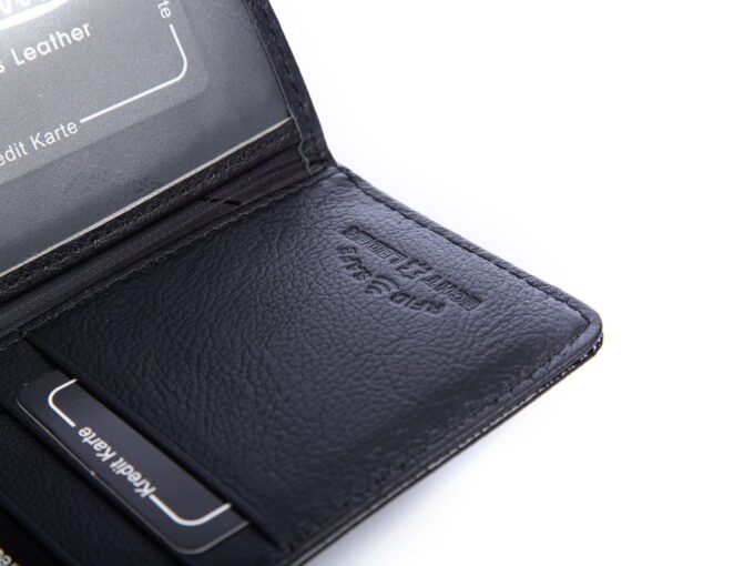 - Portfel z zabezpieczeniem RFID, chroniącym zbliżeniowe karty płatnicze.