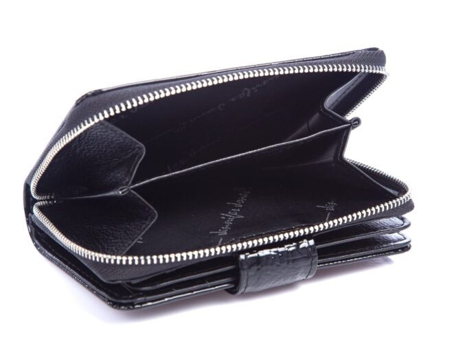 Czarny portfel damski lakierowany średni Jennifer Jones