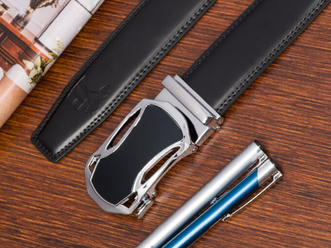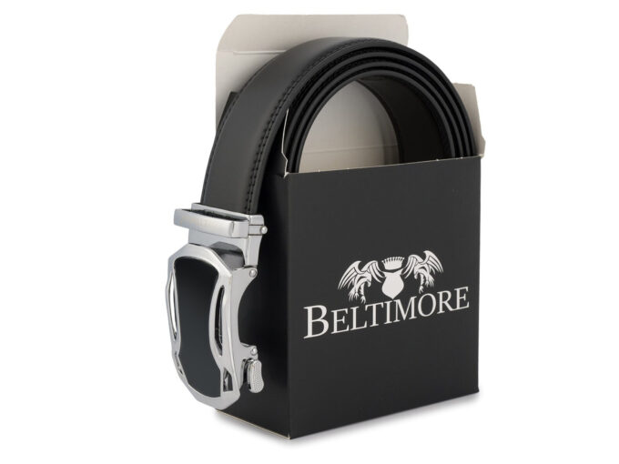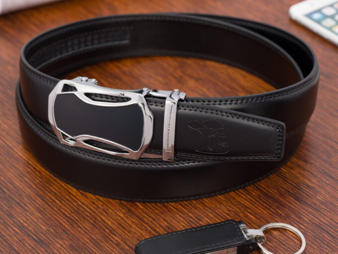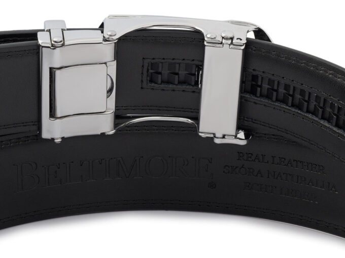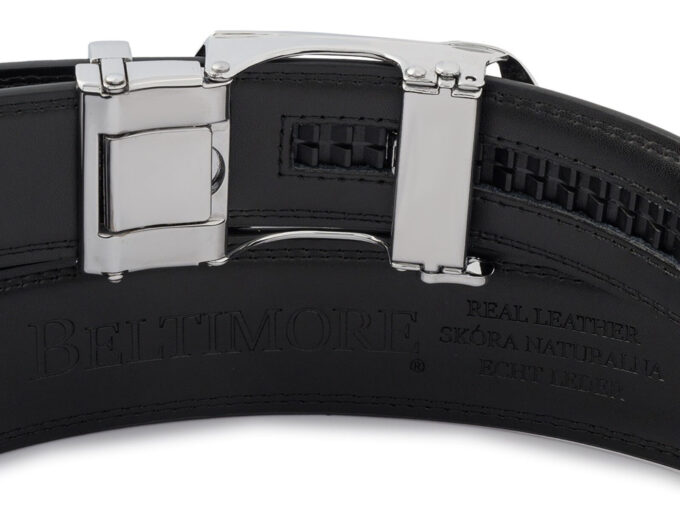 - Elegancki, czarny pasek męski skórzany z klamrą automatyczną.