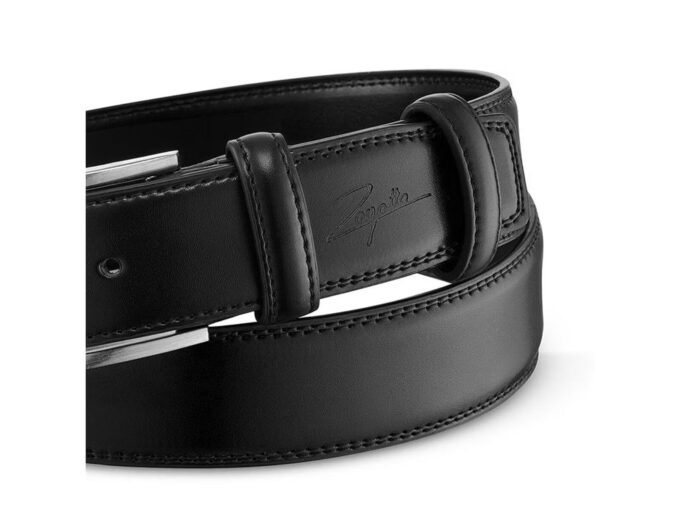 Czarny skórzany pasek męski do spodni z klamrą klasyczną ZAGATTO
