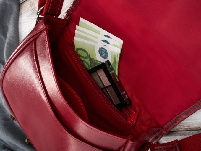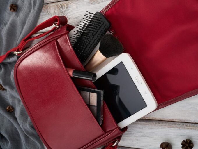 - Z przodu torebki, pod klapką umieszczono kieszonkę do wsunięcia podręcznych drobiazgów.