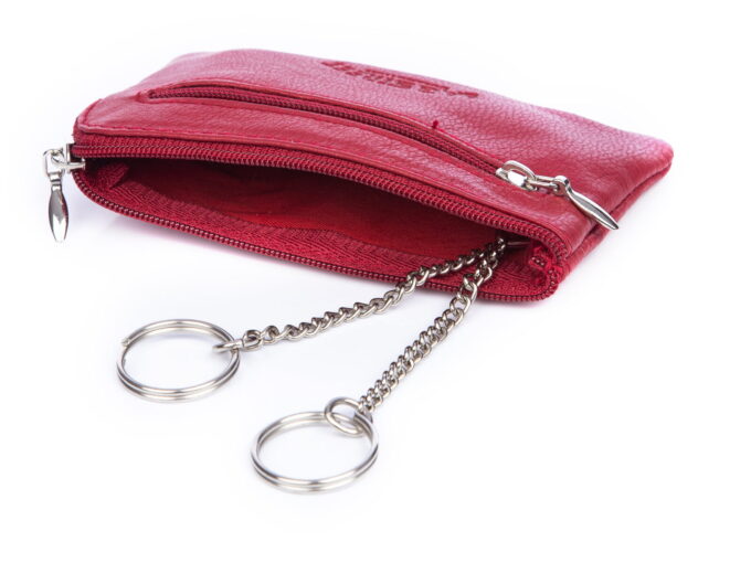 - Skórzane etui na klucze w kolorze czerwonym.