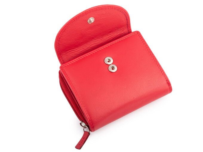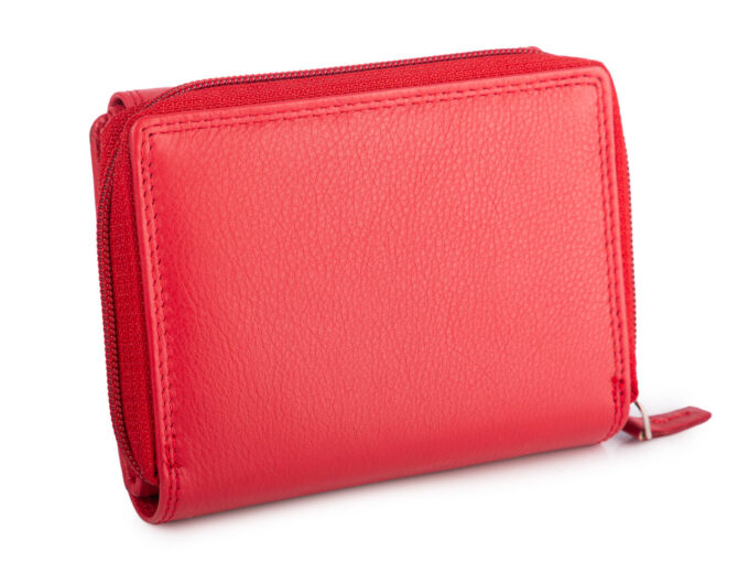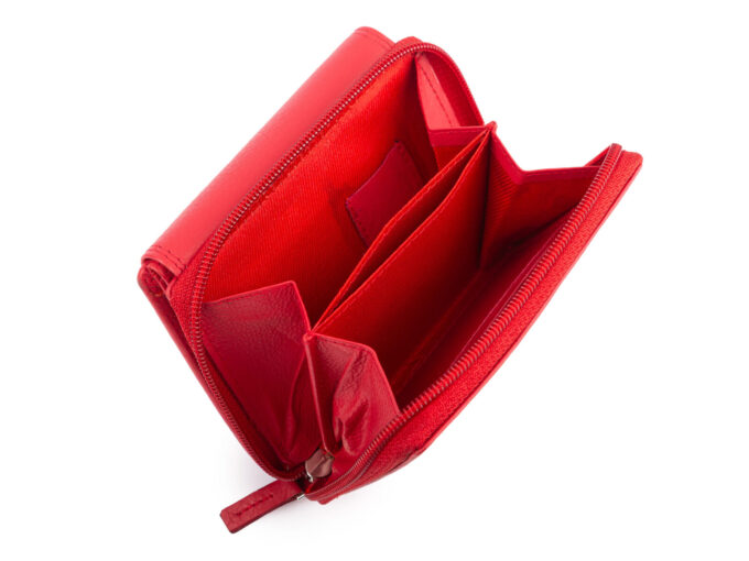 - Pojemny, czerwony portfel damski z miękkiej skóry naturalnej.