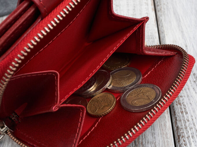- Pojemna kieszeń na monety, dzielona na dwie cześci i zapinana dookoła na metalowy zamek błyskawiczny.