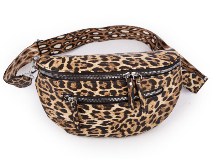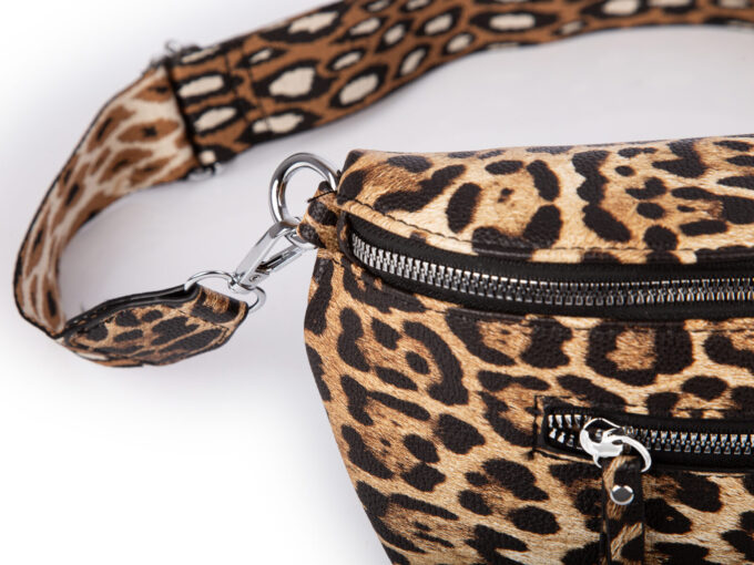 Damska saszetka typu nerka na ramię z wzorkiem w panterkę brązowa