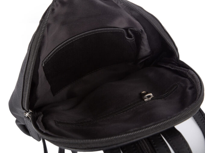 - Wewnątrz znajduje się kieszeń zamykana na dodatkowy suwak, oraz dwie kieszonki na telefon i akcesoria.