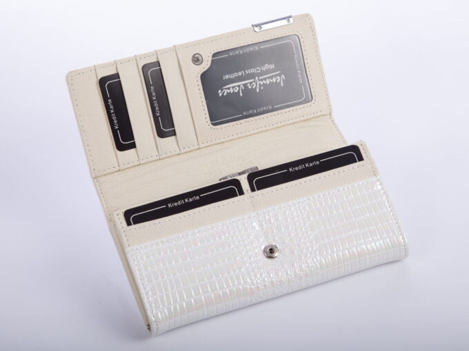Damski portfel z białej, perłowej skóry lakierowanej Jennifer Jones