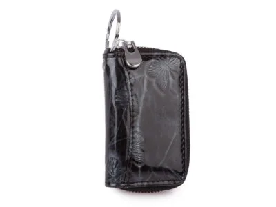 - Damskie etui na klucze, lakierowane, zielone z tłoczeniem w motylki.