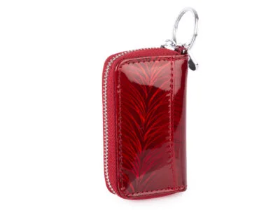 Etui na klucze damskie czerwone lakierowane z wzorem w piórka Jennifer Jones