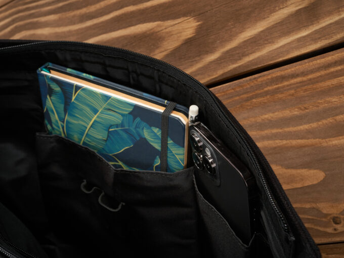 - Wewnątrz torby znajdują się dwie boczne kieszenie na akcesoria, organizer na przybory do pisania, oraz szeroka kieszeń zapinana na dodatkowy zamek błyskawiczny,