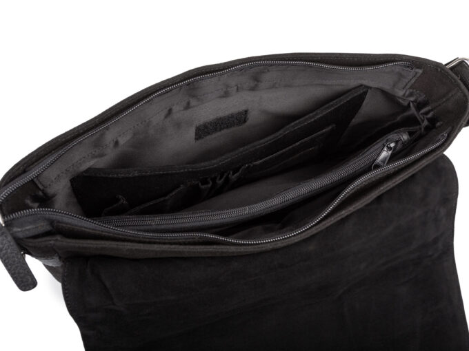 - Pod klapą umieszczono szeroką kieszeń zamykaną na poziomy suwak.