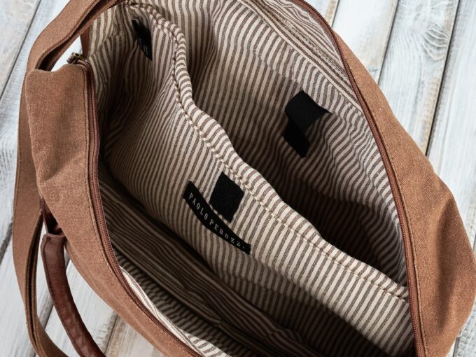 - Uszyta starannie z wysokiej jakości, mocnego, bawełnianego canvasu, oraz ekologicznej skóry wegańskiej.