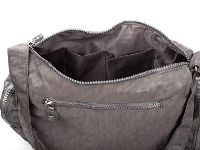- Wewnątrz torby umieszczono kieszeń zapinaną na zamek, oraz dwie otwarte kieszonki na telefon komórkowy i drobiazgi.