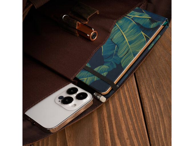 - Wewnątrz torby znajduje się także organizer na długopisy, oraz dwie boczne kieszenie na telefon i inne drobiazgi.
