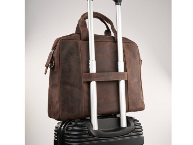 • Z tyłu, torba posiada uchwyt do zamontowania na rączce walizki podróżnej.