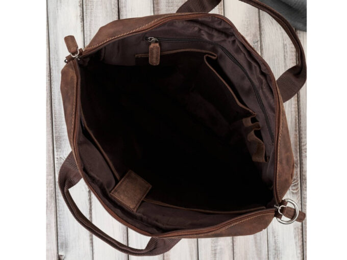 • Pasek na ramię również wykonano ze skóry naturalnej w kolorze torby, dodatkowo jest podszyty warstwą mocnego materiału.