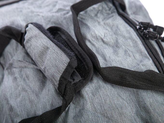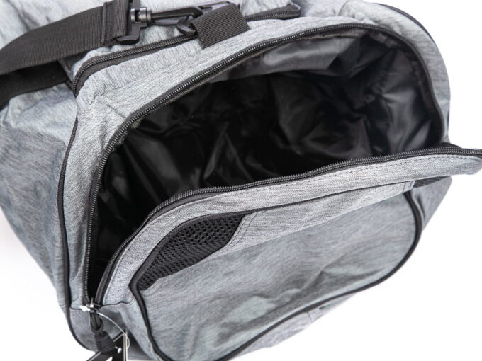- Torba z jednej strony posiada zapinaną na suwak, wentylowaną kieszeń na obuwie, odseparowaną od komory głównej.