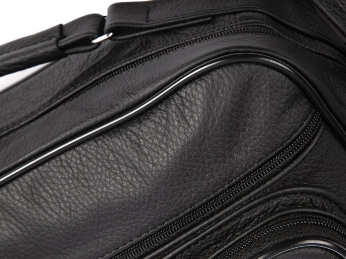 - Duża skórzana torba męska na ramię w kolorze czarnym.