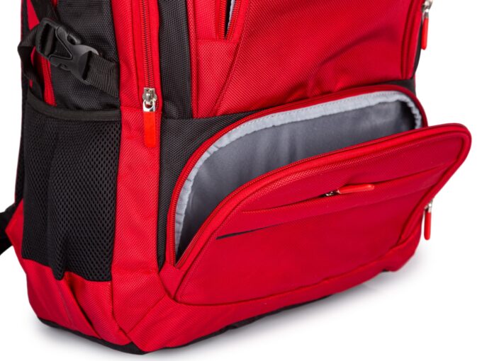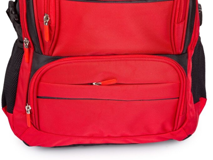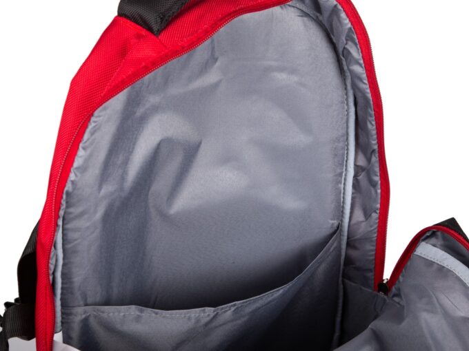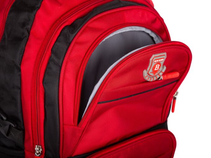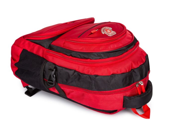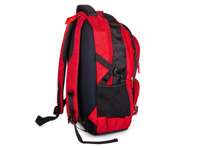 - Duży 2-komorowy plecak w kolorze czerwonym.