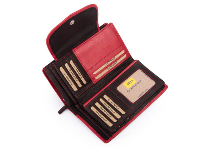 Duży, czarno-czerwony, portfel damski z miękkiej skóry naturalnej Franko