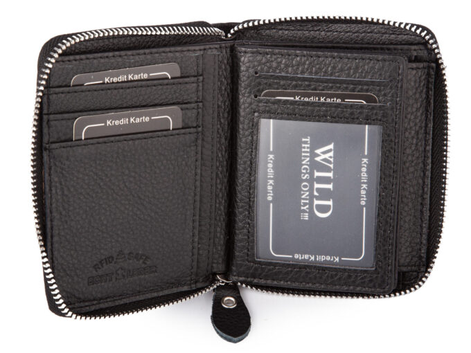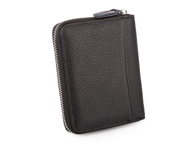 Mały skórzany czarny portfel męski zapinany na zamek marki Wild’s