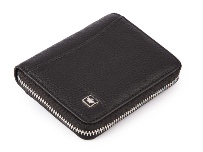 Skórzany portfel męski zapinany dookoła na zamek błyskawiczny Wild’s czarny