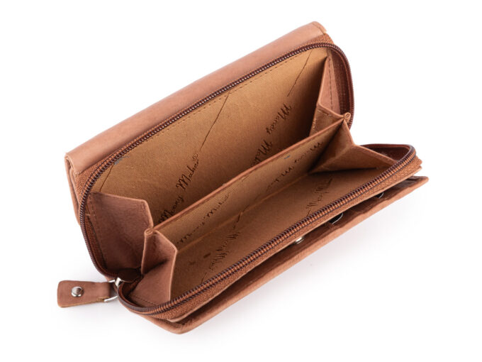 - Duża kieszeń na monety, podzielona na dwie części i zapinana szczelnie na zamek błyskawiczny.